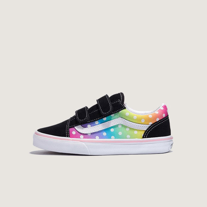 키즈 올드스쿨 V는 기존의 신발끈을 더블 벨크로 스트랩으로 교체하여 반스의 사이드 스트라이프 슈즈를 재해석한 모델입니다.