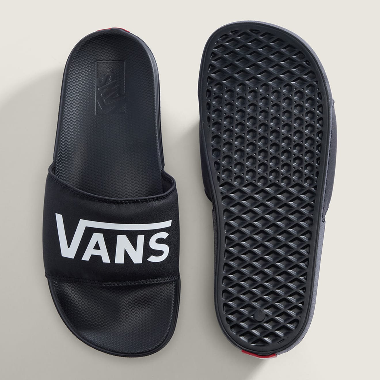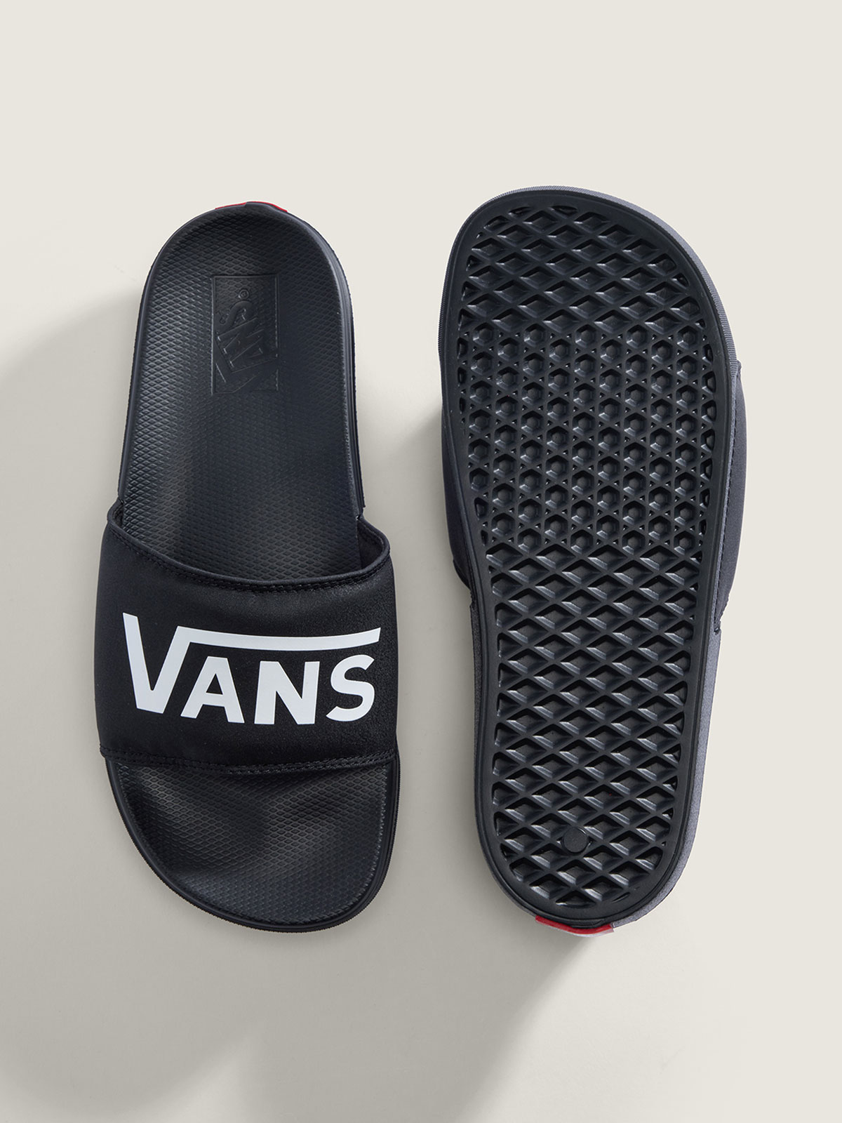 반스 벌커나이즈드 라인에 착안한 체커보드 라코스타 슬라이드-온 샌들은 반스 클래식의 상징적인 DNA를