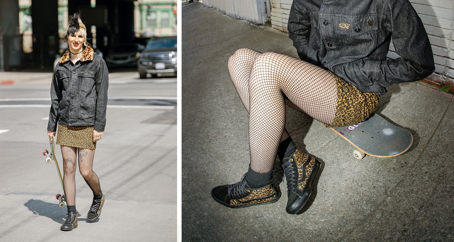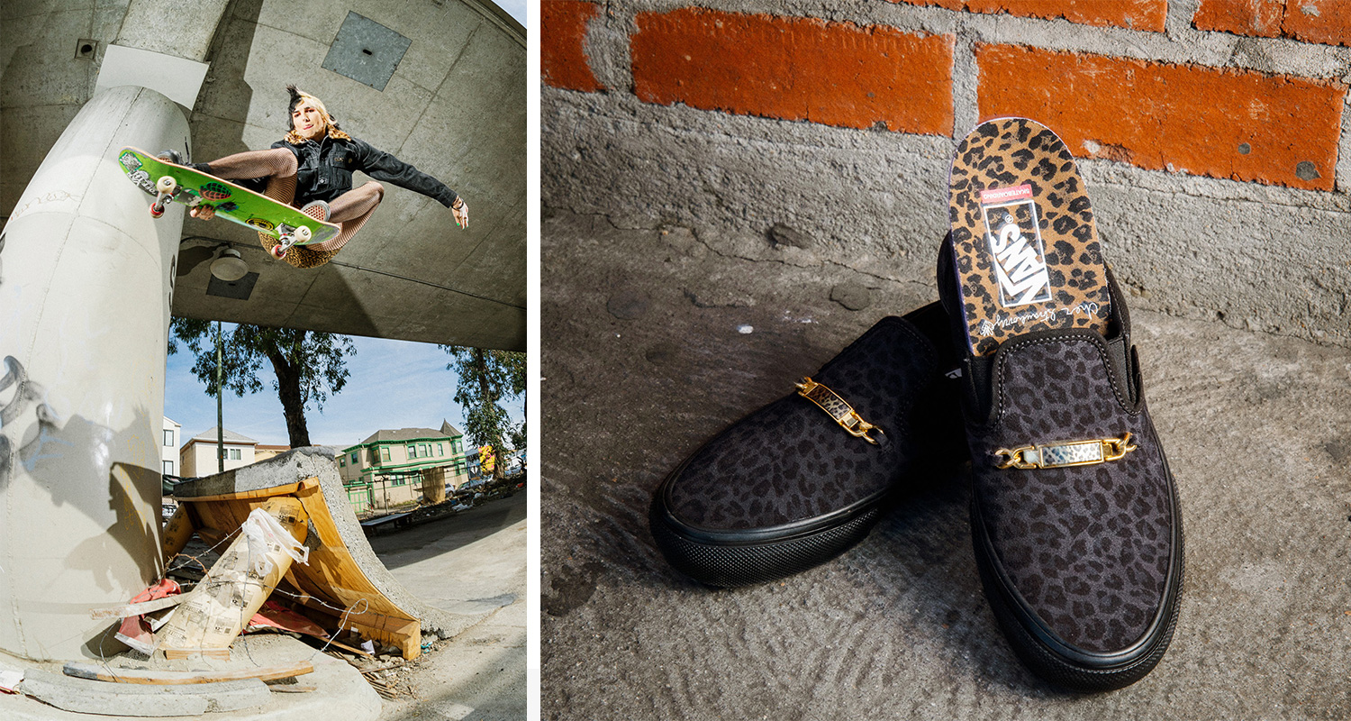 웨어는 스케이트 클래식 컬렉션의 두 가지 실루엣, 스케이트-하이 데콘(Skate Sk8-Hi Decon)과 스케이트슬립-온(Skate Slip-On)으로 구성되었다. 스케이트-하이 데콘 스타일은 높은 발목과 슬림한 라인이 돋보이는 아이코닉한 하이-탑 실루엣이다. 여기에 레오파드 패턴을 더한 캔버스 어퍼와 블랙 폭싱 테이프, 스웨이드 소재와 왁스 처리된 슈레이스 그리고 가죽 소재의 블랙 사이드스트라이프로 섬세함과 독특함을 더했으며, 사이드월 위에는 셰어의 필기체 사인을 새겨 놓아 의미를 더하였다.